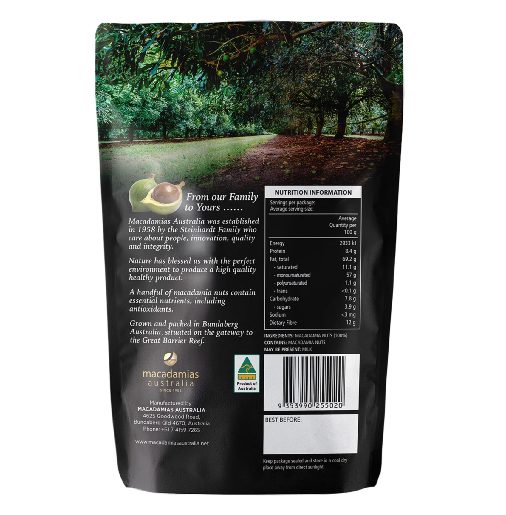 Unlock the distinctive taste of Australia’s favourite nut with Dry Roasted Happy Nut macadamias. Enjoy the velvety crunch of our naturally sweet macadamias as a healthy everyday snack, at your next party and in the kitchen.